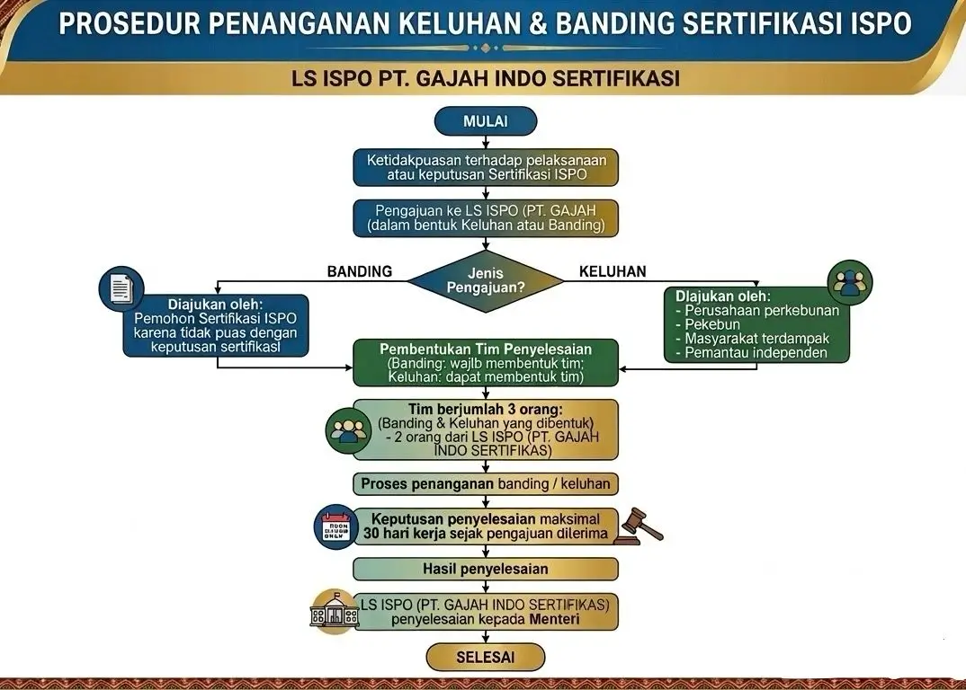 - Banding dapat diajukan oleh pemohon Sertifikasi ISPO karena ketidakpuasan terhadap keputusan Sertifikasi ISPO yang diterima.